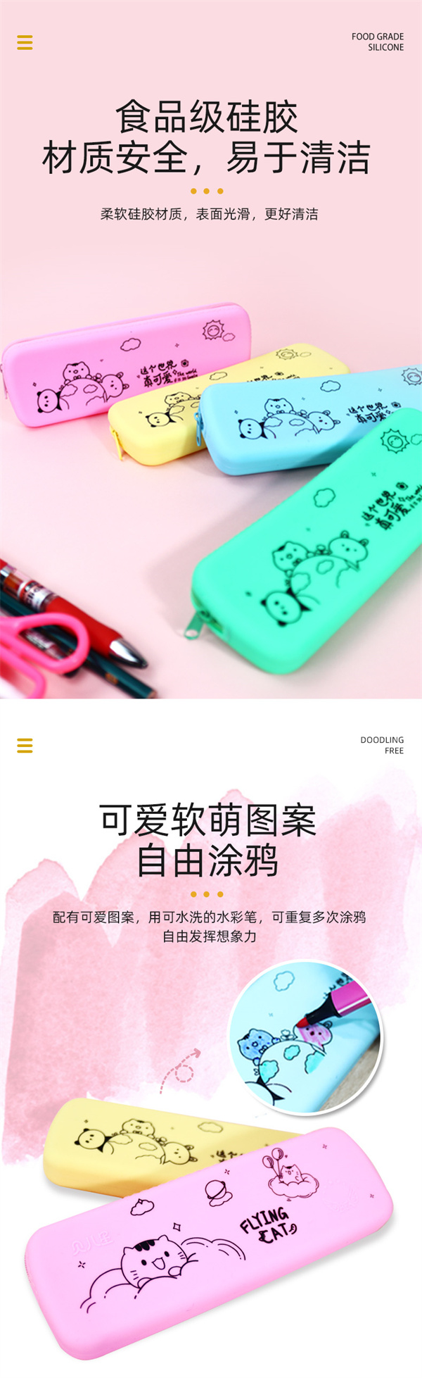 【產(chǎn)品功用】:收納硅膠筆袋,兒童文具盒,小型物品存放,筆具存放,小型禮品錢包